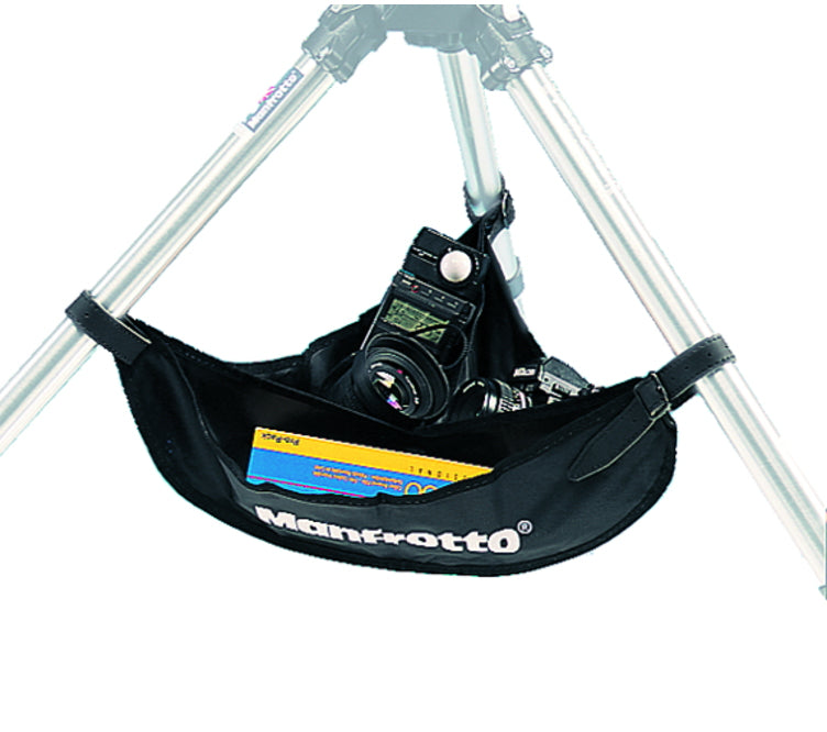 The Manfrotto 166 Tripod Utility Apron attaches to the tripod legs and allows for some storage space beneath the center column. It can also be used to hold a sandbag or stones to lower the center of gravity of your camera/tripod/tripod head combination and add some stability. Leather belt attachments adjust to most tripod leg diameters.